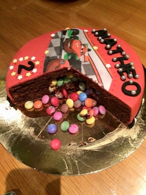 Le gâteau peut même contenir une surprise comme une cascade de Smarties, ce qu’on appelle « pinata cake ».